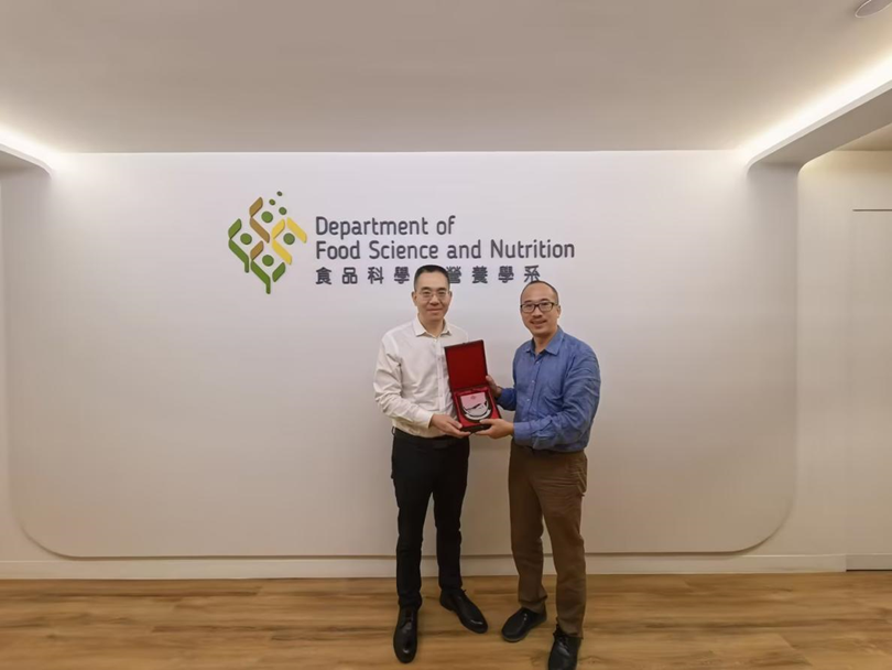 3月29日上午,赵领拜访了香港理工大学食品与营养系,探讨后续在医学营养食品领域合作的可能性,并与食品科学与营养系主任李铭源教授互赠了礼物。